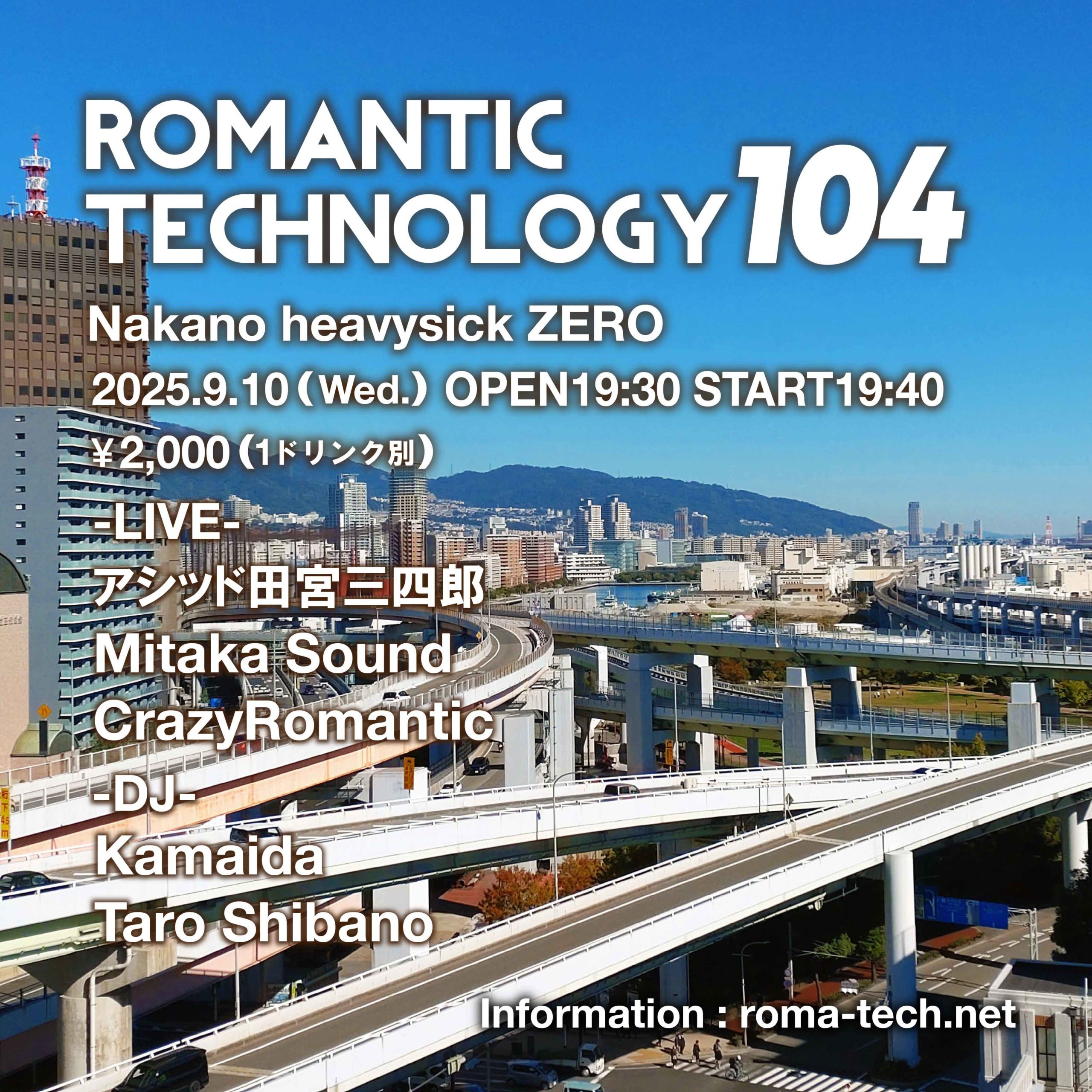 ROMANTIC TECHNOLOGY 104 2025/9/10(水) 中野heavysick ZERO OPEN 19:30 START 19:40 当日¥2000(1ドリンク別) ※当日券のみで ...